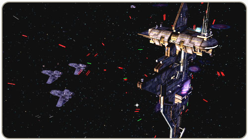 Players can cause shield and armor damage in addition to attacking other fighters. Players can support the fight by reducing the shield and armor from the opposing ship in addition to preventing opposing ships (player and NPC's) from attacking the friendly capital ship.
