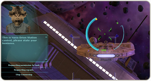 Your first mission will be a simple patrol that requires you to fly to several waypoints n space. The waypoints will appear on your radar as pulsing white triangle, on your HUD as white arrows, and actually in space as glowing beacons of light. Once you pass through a patrol waypoint, your mission will update and you'll receive the next patrol point.