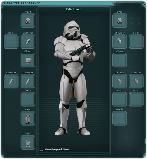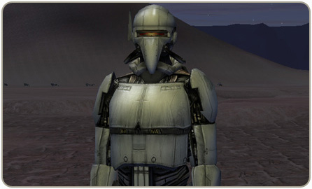 Different professions will be able to utilize different sets of armor to their advantage. This is to make sure that all sets of armor are not only in the game and available for use, but also useful in both PvE and PvP combat. Seen here is the Second tier of "Battle" armor which for Imperials will be the much loved familiar Stormtrooper armor.