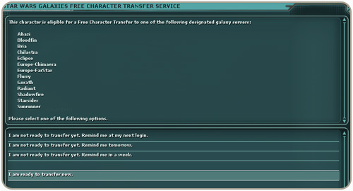 You can also search by profession if you're looking for a particular character to round out your group, if you need an entertainer to buff you, or a trader to make that item you've been longing for. Looking for a Wookiee for a Life Day role-playing event? You can search for characters by species as well.