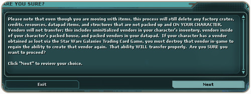 The Star Wars Galaxies development team continues to work on a variety of new features such as player-owned ground vehicles, player mounts and player cities, along with substantial new content to be introduced in the coming months.