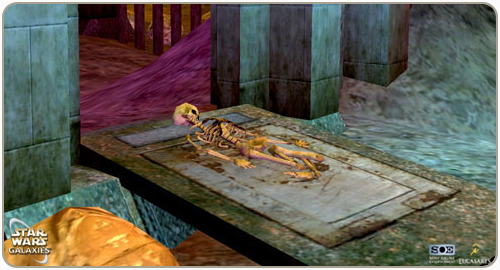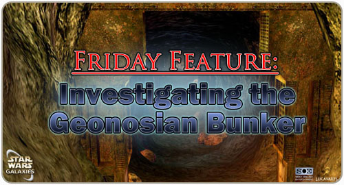 Whether you are new to Star Wars Galaxies or one of the Veterans, the Geonosian Bunker is one of the best places to visit in-game. Bothan spies have intercepted transmissions from an Imperial Officer named Lt. Harmon Vintollo in Kadaara and an undercover Rebel operative in a hotel in Tyrena named Teraeza Furloti. They both speak of a hidden biogenics lab run by the Geonosians. The information was leaked to the holonet so we are able to re-transmit to you here: