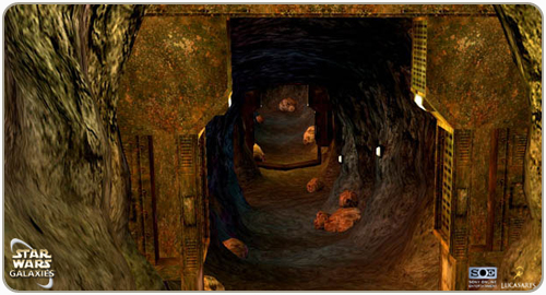 A few months ago, a LucasArts employee who plays the game religiously started a grass-roots crusade to get Mandalorian armor into the game. I was sympathetic, but we had so much on our plates already. Fortunately, during a review of the dungeon assets in development, we discovered a rundown mine that nobody was sure how to populate. To me, it seemed like the perfect hideout for a gang of mercenaries - and thus, we decided that it would become the lair of the Death Watch, an offshoot of the Mandalorians. I'm not going to give away too many details, but I'm really excited about the direction for the dungeon and I think it's going to make both powerful combat characters and skilled crafters happy...