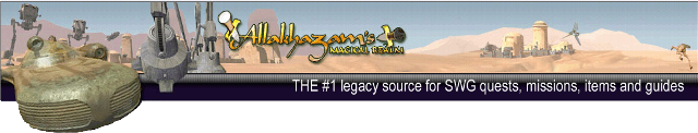 LucasArts® and the LucasArts logo are registered trademarks of Lucasfilm Ltd. Star Wars Galaxies™ is a registered trademark of Lucasfilm Entertainment Company Ltd. SOE® and the SOE logo are registered trademarks of Sony Online Entertainment LLC. © 2002-2010 Lucasfilm Entertainment Company Ltd. or Lucasfilm Ltd. & ® or TM as indicated. All rights reserved.